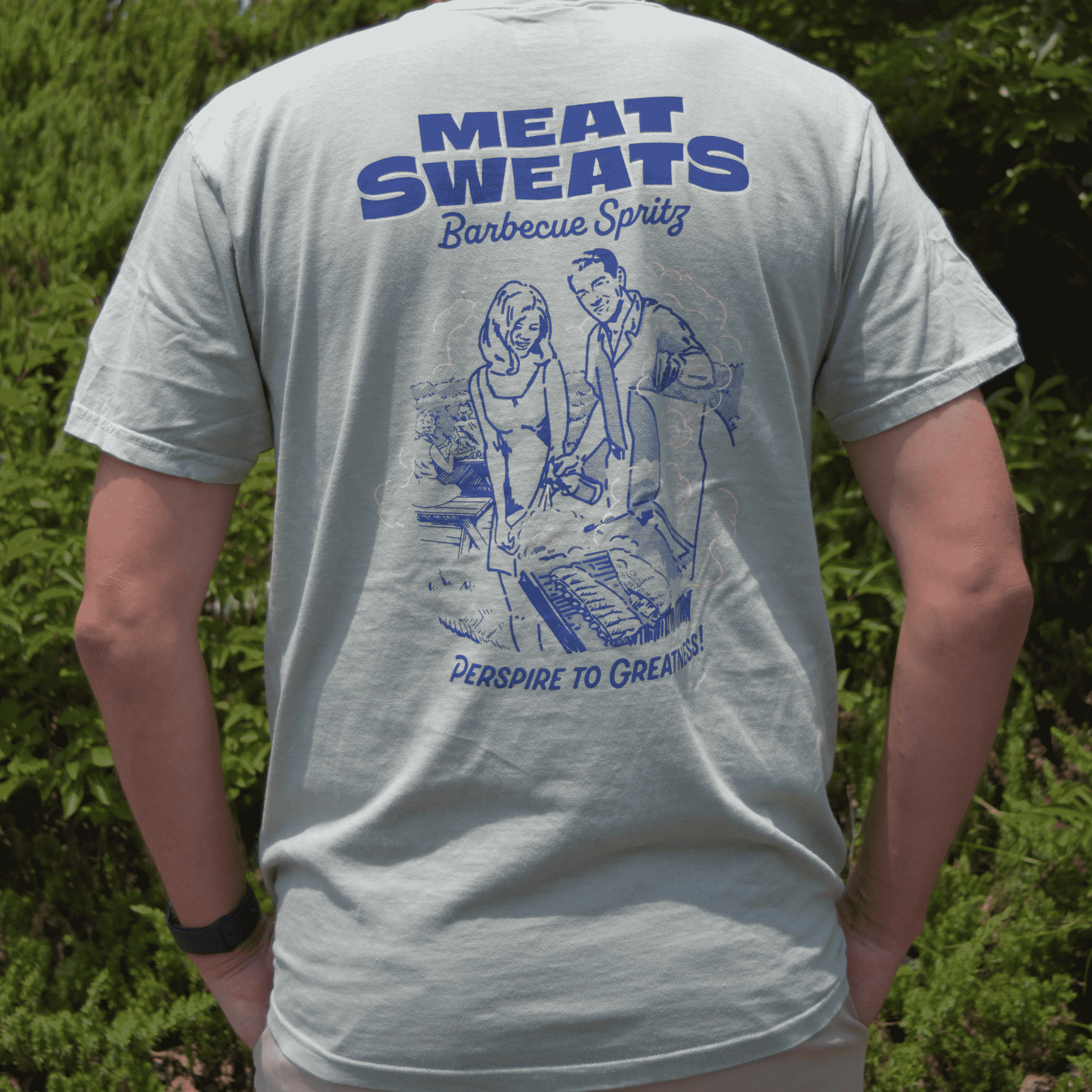 Adult Comfort Colors Unisex Pocket T-Shirt with our summer logo on the front pocket, and summer illustration logo on the back in Bay and Navy/Bubblegum logo. 100% cotton.