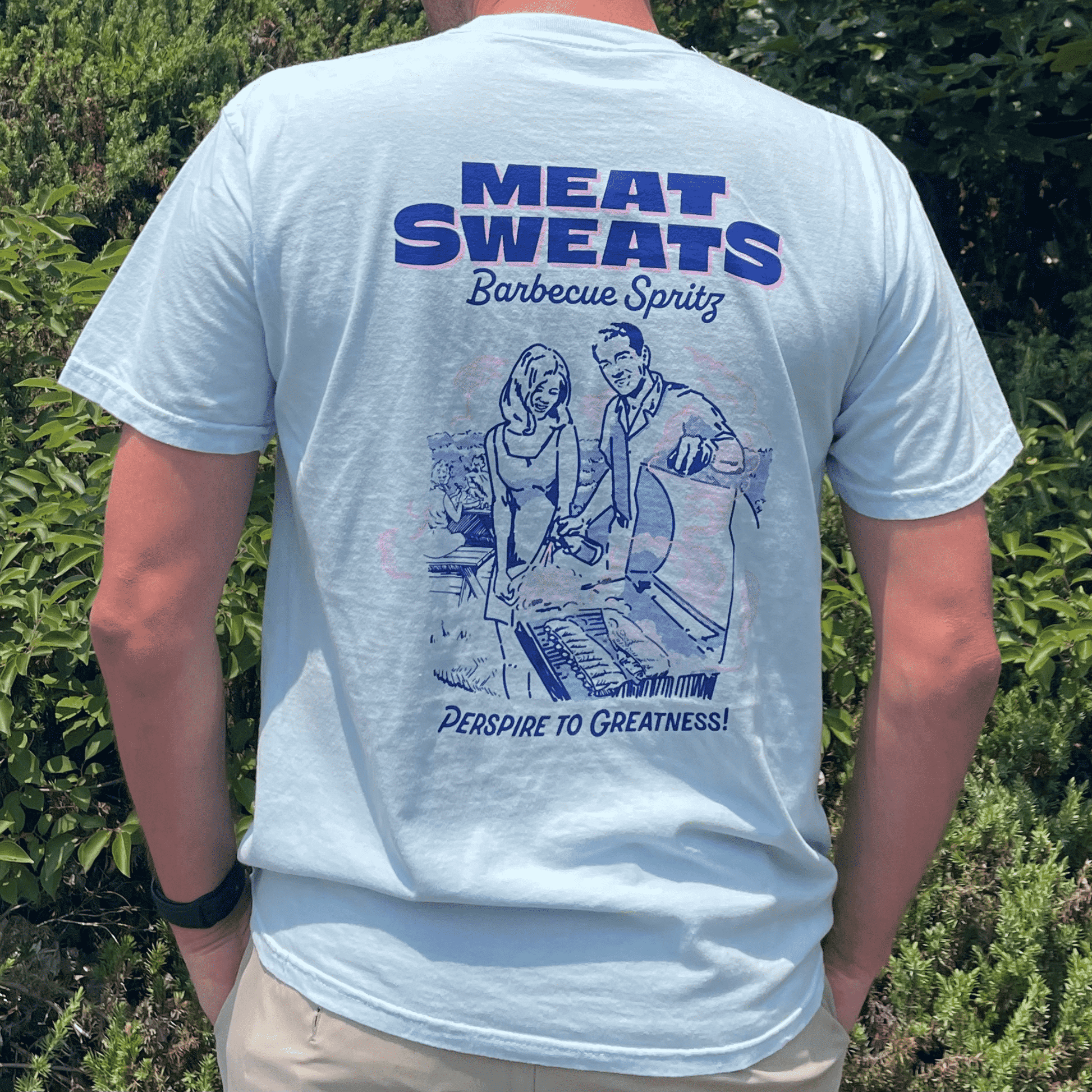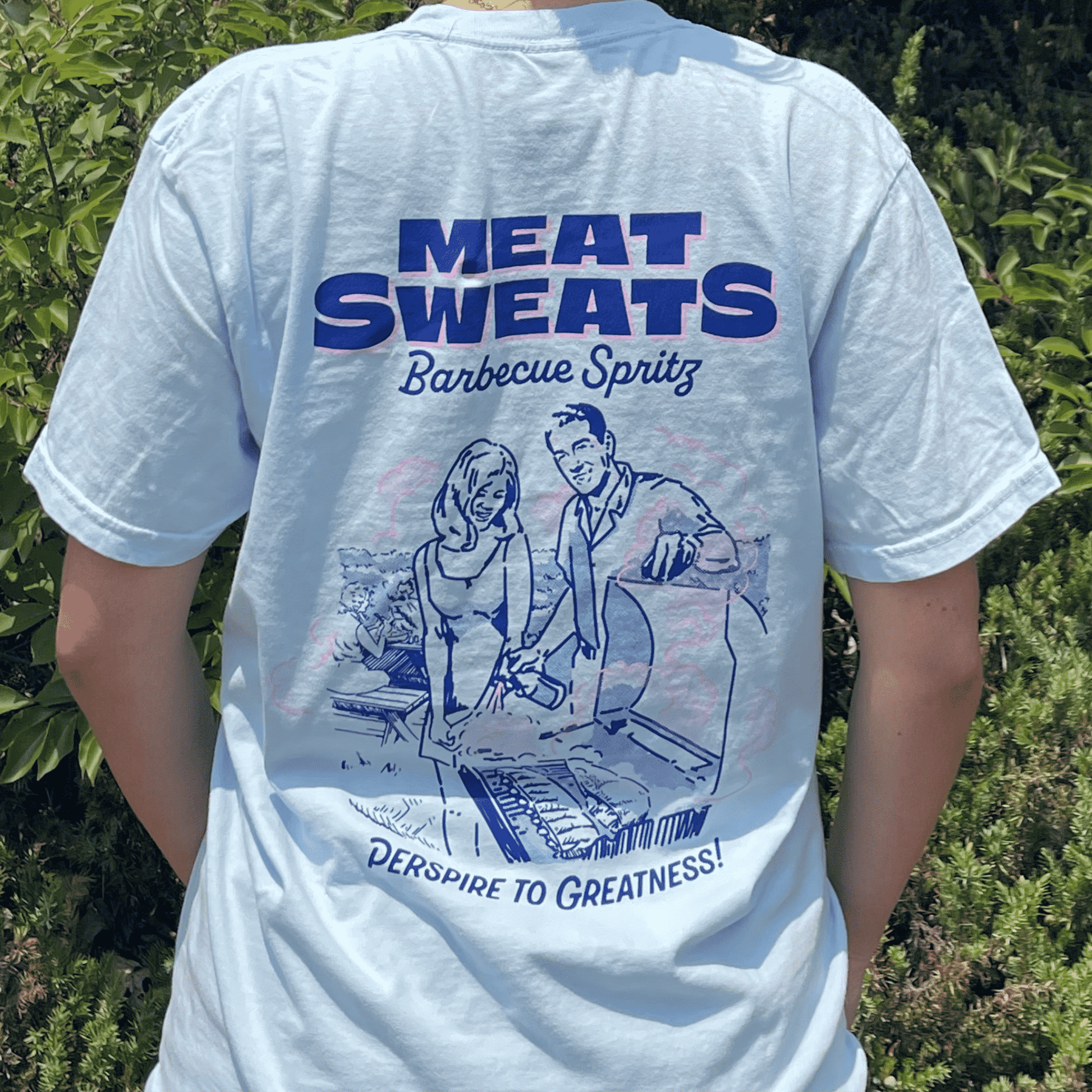 Adult Comfort Colors Unisex Pocket T-Shirt with our summer logo on the front pocket, and summer illustration logo on the back in Chambray with Navy/Bubblegum logo. 100% cotton.